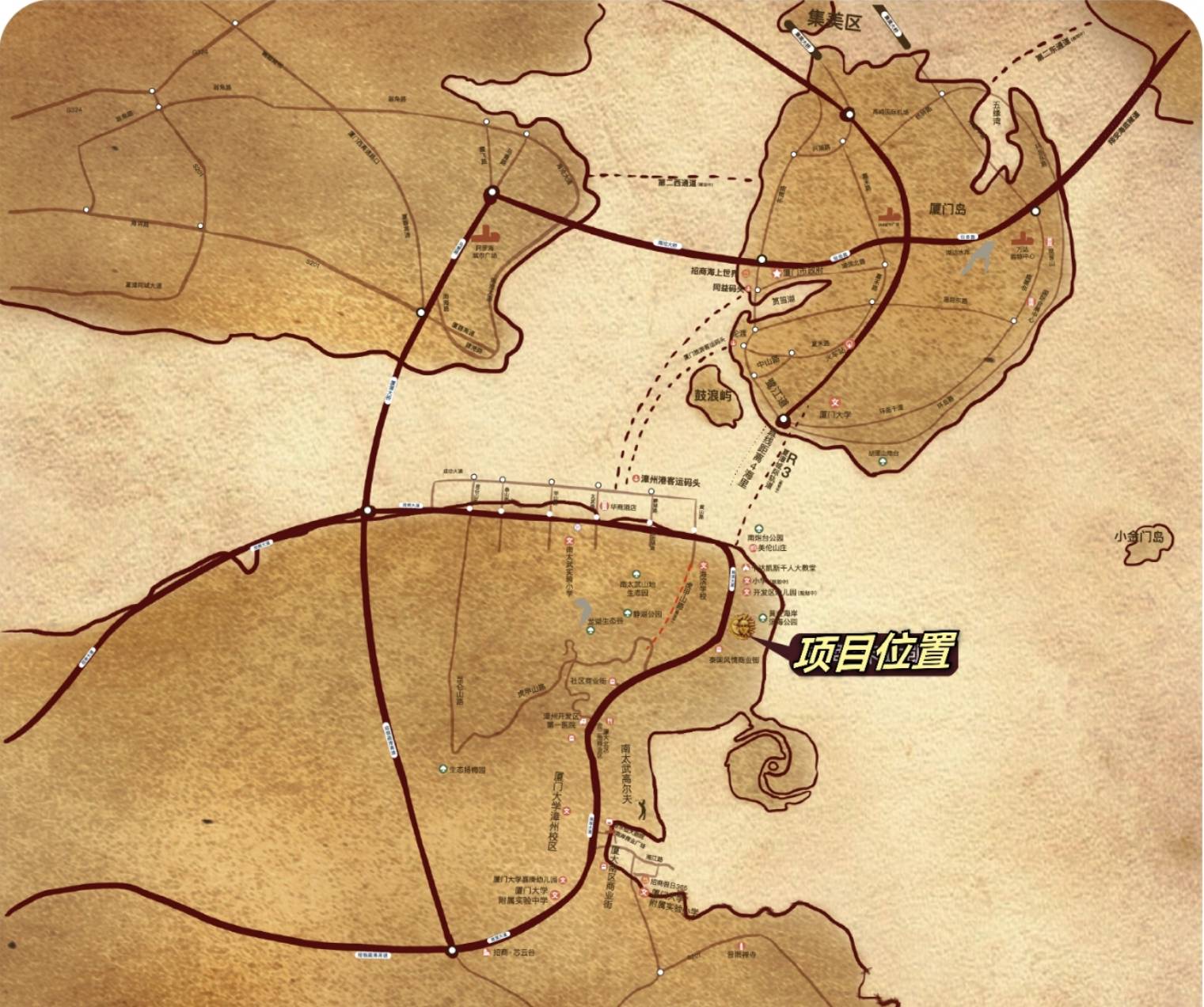 招商卡达凯斯阿莫湾位于厦门湾南岸南炮台旁,东临一线厦门湾海域,北靠南炮台公园,未来的厦漳海底隧道入口处,与厦门岛隔海相望。这样的地理位置,不仅让住户能够轻松享受长达2.5公里(一说2公里)的私家海岸线,还能在闲暇时光沿着海岸线散步,观海听涛,享受心灵的洗涤。与周边楼盘相比,招商卡达凯斯阿莫湾的地段优势显而易见,海景资源更是稀缺难得。