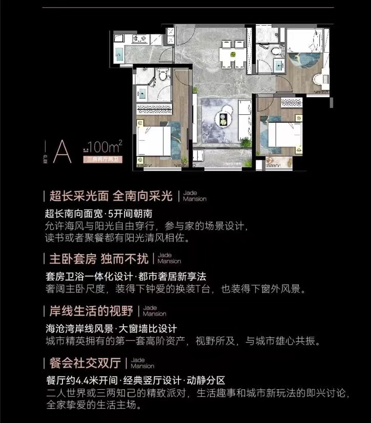海沧中心TOD璞瑞的地理位置得天独厚,前有海沧湖,后有海沧湾,形成了独特的双重景观优势。项目还开创性地推出了270°环幕端厅户型设计,在近乎35㎡的超大客厅里,居民可以享受到270°环绕式的湖海景观包围,这种体验光是靠想象就足够震撼。住在这样的房子里,不仅面子十足,幸福感也会大大提升。