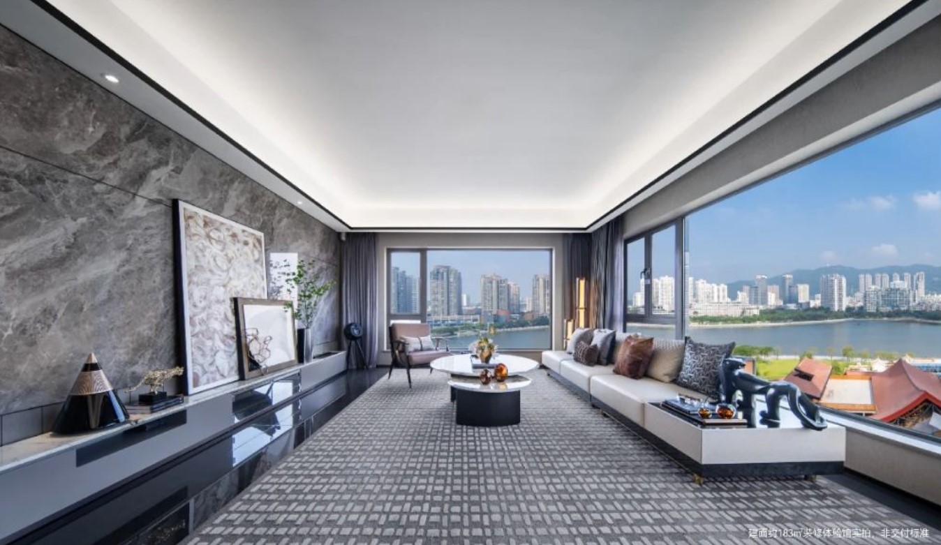 二、建筑设计与空间艺术 璞瑞项目的建筑设计充分考虑了空间与景观的融合。约13米的巨幕观景尺度,让湖光几乎萦绕在每一寸视野之中。而约270°的观景角度,则使得一线湖海双景尽收眼底。这种设计不仅提升了居住的舒适度,更让空间本身成为了一件艺术品。