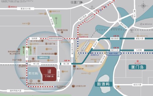 观湖大境项目位于角美政务青阳湖畔,周边交通便捷,地铁6号线(在建)、R1线(规划)、厦漳跨海大桥、厦漳同城大道、厦深高铁等交通主干道环绕;商业设施丰富,有万益广场、万达广场等购物中心;教育资源优越,有厦门三二中学漳州分校、第三实小、角美中学、漳州培文学校等名校;医疗设施完善,有漳州第五医院、毗邻海沧医院和长庚医院等医疗机构。这些公共设施的便利性使得观湖大境项目成为了一个宜居宜业的理想之地。