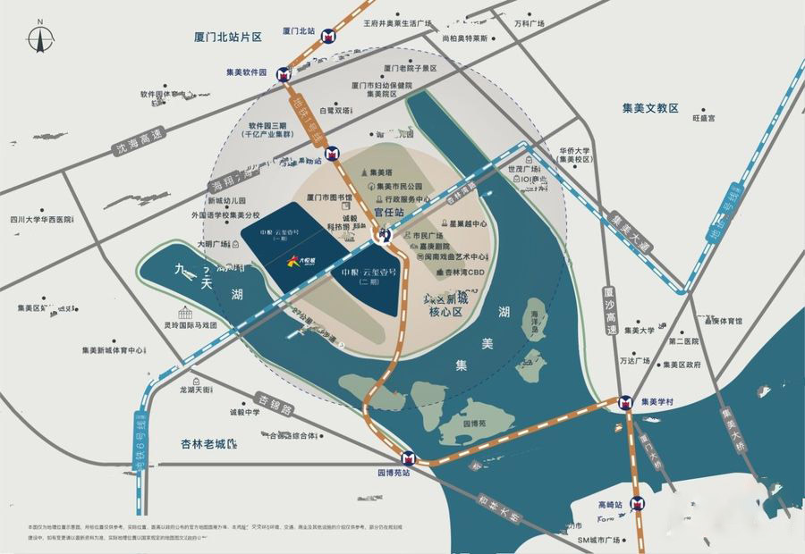 中粮云玺壹号坐落于集美新城的核心区域,紧邻官任地铁站出口,享有双轨TOD的交通优势,交通路网四通八达,为居民的出行提供了极大的便利。周边配套设施丰富,包括灵玲国际马戏城、嘉庚剧院、科技馆、园博苑和集美湖等休闲娱乐设施,厦门大悦城综合体等商业配套,满足居民购物、休闲等多元化需求。