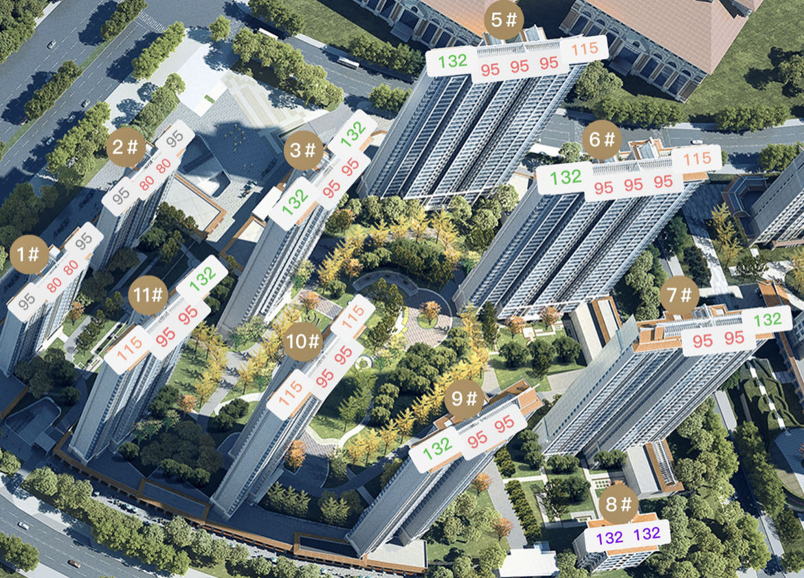 中粮云玺壹号提供多种户型选择,涵盖80-150㎡的不同面积段,满足不同家庭结构的居住需求。其中,建面约150㎡的四室两厅两卫户型空间宽敞,适合人口较多的家庭;建面约130㎡和115㎡的四室两厅两卫户型布局合理,性价比较高;而建面约95㎡的三室两厅两卫户型则紧凑实用,适合小家庭居住。