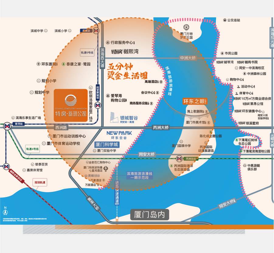 特房新玥公馆位于厦门市同安区西洲路泰普集团生物科学园东南侧,这个地段可以说是相当优越。周边交通网络四通八达,公共交通较为便捷,周边直线1公里内有10个公交站。驾车出行也十分方便,无论是前往岛内还是周边区域,都能轻松抵达。与周边楼盘相比,特房新玥公馆的地段优势显而易见,为购房者提供了便捷的出行条件。