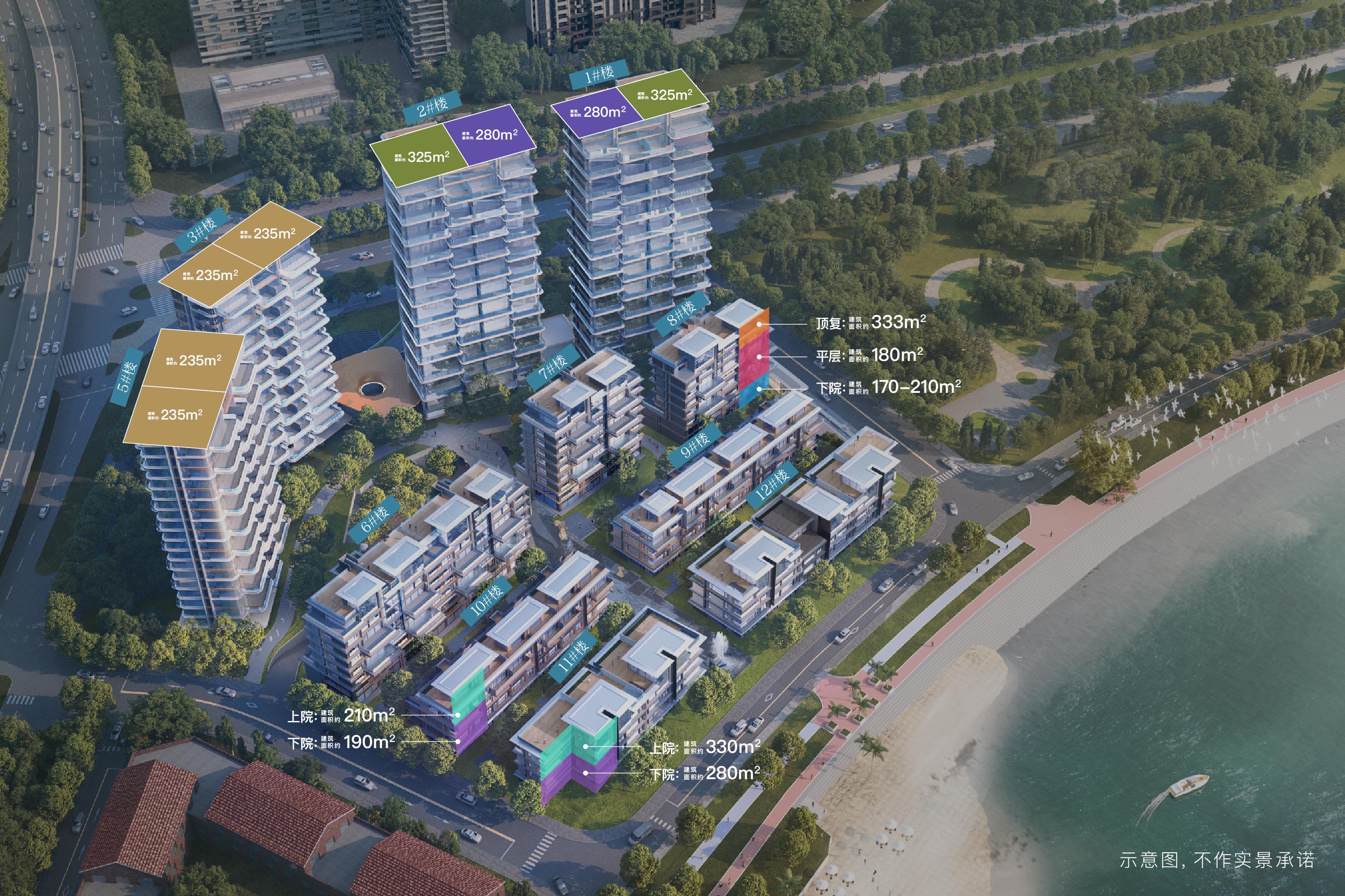 第三排:洋房四代宅(平层约180㎡,下院约170-210㎡,顶复约333㎡)