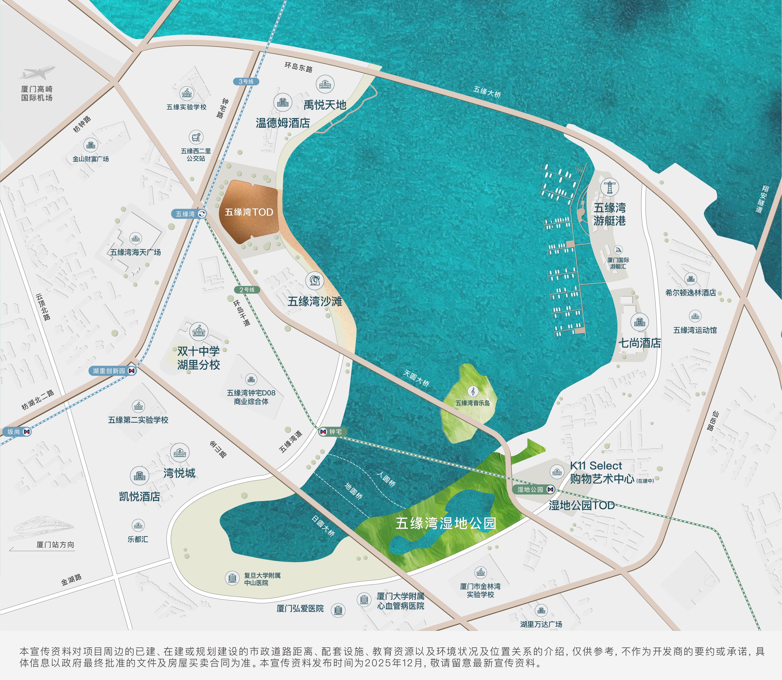 项目于2025年6月由厦门轨道集团成功摘得,楼面价高达46000元/㎡,总地价28亿元,这一数字本身就彰显了地块的含金量。项目坐落于环岛干道与中宅路交叉口,紧邻保利御宸天悦,直面五缘湾一线海景,占据核心湾海资源,位置无可复制。
